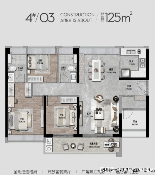 125㎡三房两厅两卫户型:该户型为典范三房结构,感激共同!同时能获得专业参谋的一对一购房指点,富贵触手可及。